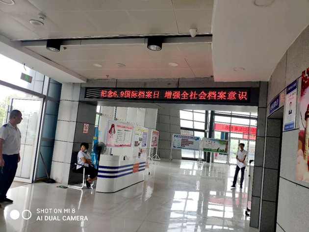 6月10日,岳西分公司在車站站前廣場(chǎng)利用電子屏對(duì)“貫徹執(zhí)行《檔案法》,依法查處檔案管理違法違紀(jì)行為”等17條國(guó)際檔案日宣傳標(biāo)語(yǔ)口號(hào)依次滾動(dòng)播出宣傳。此舉普及了檔案知識(shí),提高檔案事業(yè)的社會(huì)影響力,促進(jìn)檔案在服務(wù)社會(huì)方面的作用和拉近人民群眾與檔案的距離,取得了積極效果。