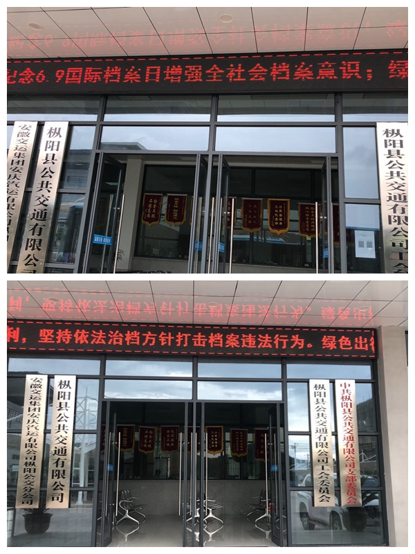 6月9日,宿松分公司在候車大廳電子顯示屏幕上不間斷播放檔案法宣傳標(biāo)語(yǔ)。為做好新時(shí)代檔案工作營(yíng)造良好的輿論氛圍,充分發(fā)揮其“記錄歷史,傳承文明,服務(wù)社會(huì),造福人民”的獨(dú)特作用。