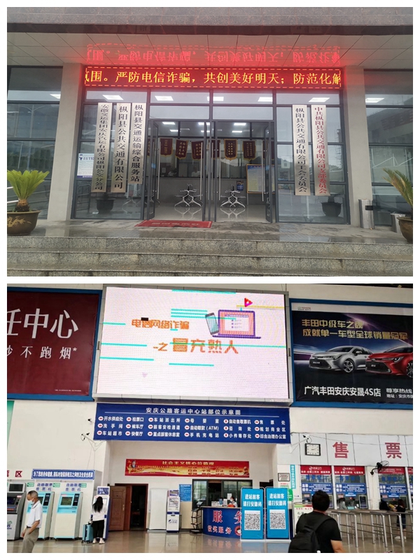 為進(jìn)一步加強(qiáng)打擊治理電信網(wǎng)絡(luò)詐騙犯罪,切實(shí)提升人民群眾防范意識(shí)和法律觀念,有效遏制電信網(wǎng)絡(luò)詐騙犯罪的發(fā)生,2021年5月15日至2021年6月15日,安慶公路客運(yùn)中心站開展“防范電信網(wǎng)絡(luò)詐騙犯罪集中宣傳月”活動(dòng),活動(dòng)期間車站利用站內(nèi)電子顯示屏投放多條公益廣告,發(fā)布防范和打擊電信網(wǎng)絡(luò)詐騙的相關(guān)宣傳內(nèi)容和信息。宣傳片引得旅客及司乘人員紛紛駐足觀看學(xué)習(xí),切實(shí)營(yíng)造了宣傳氛圍,提高了群眾防騙意識(shí)和能力。